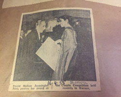 Malinee's Chopin Prize Malinee The Thinker Malinee on Ship With Family Malinee in New York